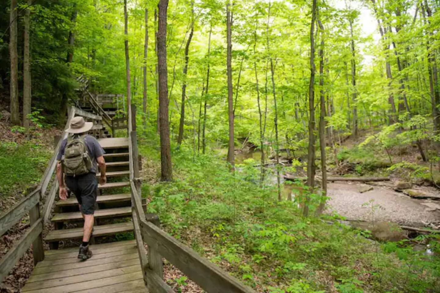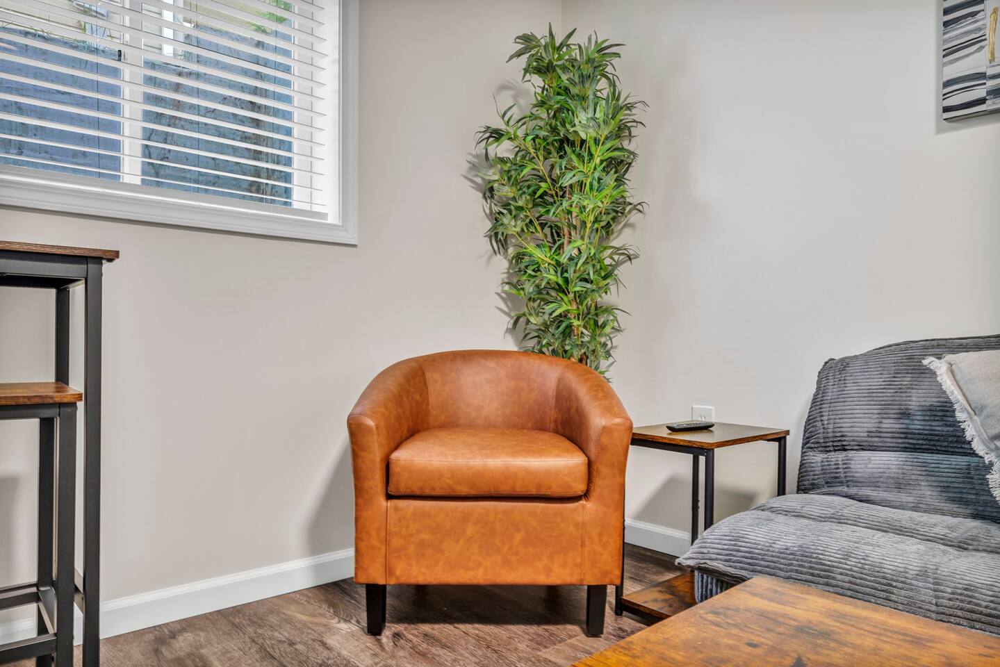 Our cozy and fully remodeled basement unit offers a comfortable and stylish stay for up to 4 guests. You'll find a king size bed in the bedroom, along with a sofa sleeper in the living room that can sleep 2 smaller sized children. Escape to a peaceful retreat with a private backyard that backs up to the serene Metroparks wooded area. Enjoy cozy evenings around the fire pit, surrounded by nature and tranquility. Whether you're relaxing outdoors or exploring the nearby trails, this space offers a perfect getaway. NOTE – Dogs are welcome here! Please note there is a $30/night/dog fee, billed separately after booking. NOTE - Smoking is not allowed, penalty is $500. Private and Convenient: THIS IS A BASEMENT UNIT with a completely private entrance and entirely private living space. You'll have full access to your own quiet and comfortable area, with no shared spaces to worry about, ensuring your stay is peaceful and undisturbed. Modern Comfort: Step inside, and you'll discover a cozy and fully renovated space adorned with stylish, modern decor. We've designed every corner of this bungalow with your comfort and enjoyment in mind. Local Charm: While you're here, take advantage of the fantastic location. We're in close proximity to coffee & donut shops and restaurants, allowing you to experience the local flavor of Berea. Quiet and Safe Neighborhood: Our home is nestled in a peaceful and safe neighborhood, perfect for a relaxing stay. Whether you're in town visiting Baldwin Wallace University, cheering on the Cleveland Browns, Cavaliers, or Guardians, or if your travels find you in Berea for other reasons, you'll appreciate the tranquility of our surroundings. Fully Stocked Essentials: We want your stay to be hassle-free. That's why our house is fully stocked with all the essentials you need. Items such as towels, linens, paper towels, dish soap, laundry detergent, trash bags, toilet paper, shampoo, conditioner, and body wash, are all fully stocked during your stay. We've thought of everything to make your stay as comfortable as possible. Nearby Attractions: Don't forget to explore the nearby attractions! Berea is known for their beautiful Metropark trails, which are within walking distance from the home. We're less than 20 minutes to the Cleveland Zoo and 25 minutes away from the Rock and Roll Hall of Fame and the Great Lakes Science Center, making it easy to immerse yourself in Cleveland's cultural scene. This home is the ideal choice for those seeking a cozy and modern escape in Berea. Book your stay now, whether it's for a night or a more extended visit and experience the best of Ohio!